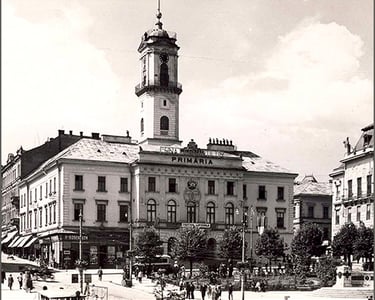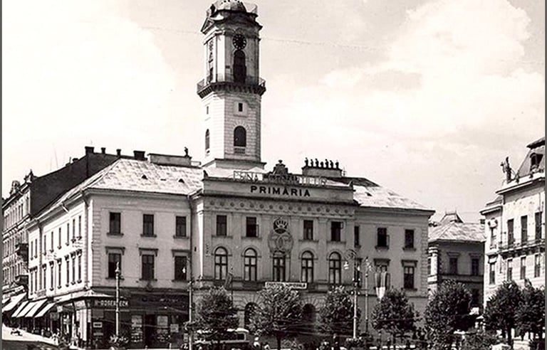 Чернівці, 1930-і роки. Центральна площа та міська ратуша з румунським надписом “Примарія”.