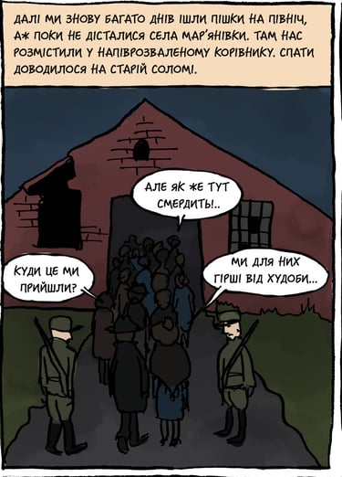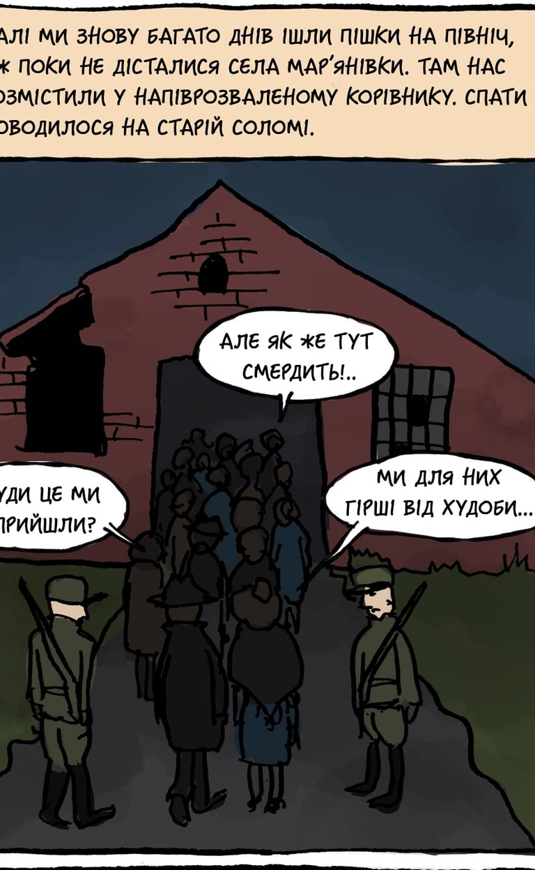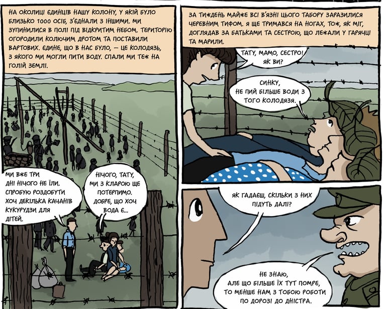 Дорогою колона євреїв зупинилася на ночівлю під відкритим небом. Їжі не було, але поруч була криниця. Як виявилося, вода в криниці була отруєна. За тиждень більшість людей заразилася черевним тифом.